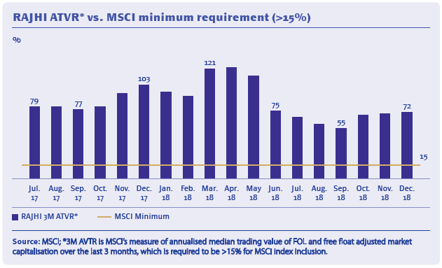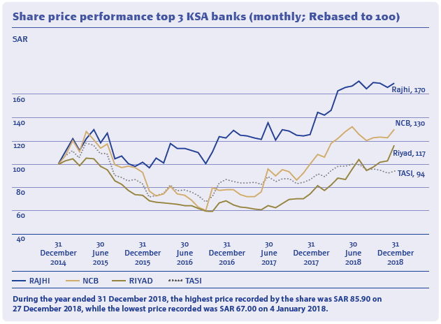 The market value of the Bank’s ordinary share was SAR 87.50 as of 31 December 2018, while it was SAR 64.62 as of 31 December 2017.